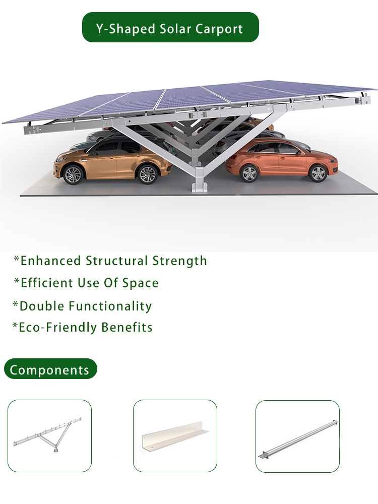 Carbon steel solar carport bracket system is a facility that combines the functions of solar power generation and parking shed, usually used in commercial or residential areas. This type of system not only provides the convenience of parking, but also enables energy self-sufficiency by generating electricity through solar panels.